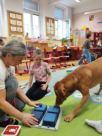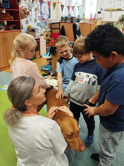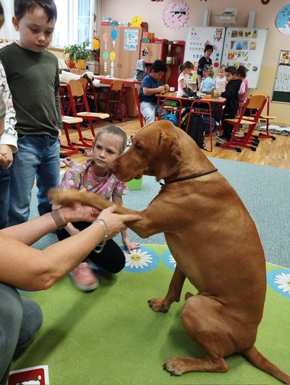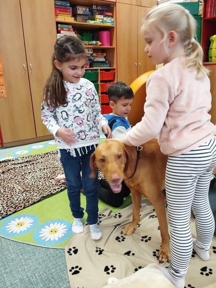 Naši přípravnou třídu navštívili tři canisterapeutičtí pejskové se svými průvodci. Děti se naučily, jak ke psům bezpečně přistupovat, jak je pohladit a jak se o ně s respektem starat.