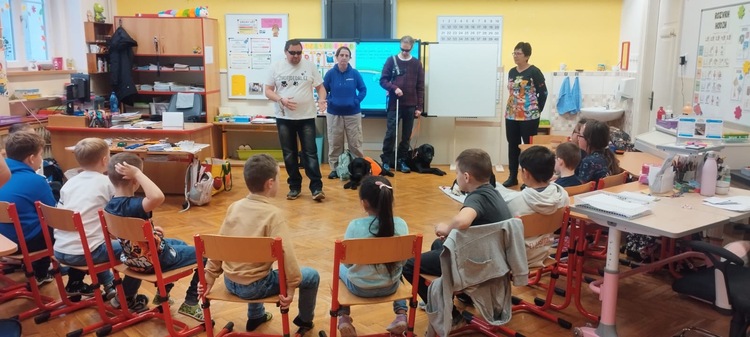 Dnes tento projekt navštívil naši třídu 2.B a děti měly možnost vidět, co vše asistenční pejsci dokážou, a vyzkoušet si, jaké to je žít bez zraku.