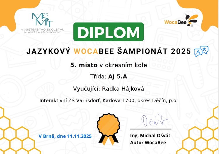 Žáci naší školy se letos zúčastnili soutěže Jazykový WocaBee šampionát 2025.
