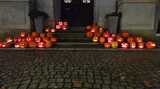 Dýně jsme vystavili a rozsvítili na schodišti před školou. Strašidelně ozdobily školu a vnesly do akce "strašidelného ducha".